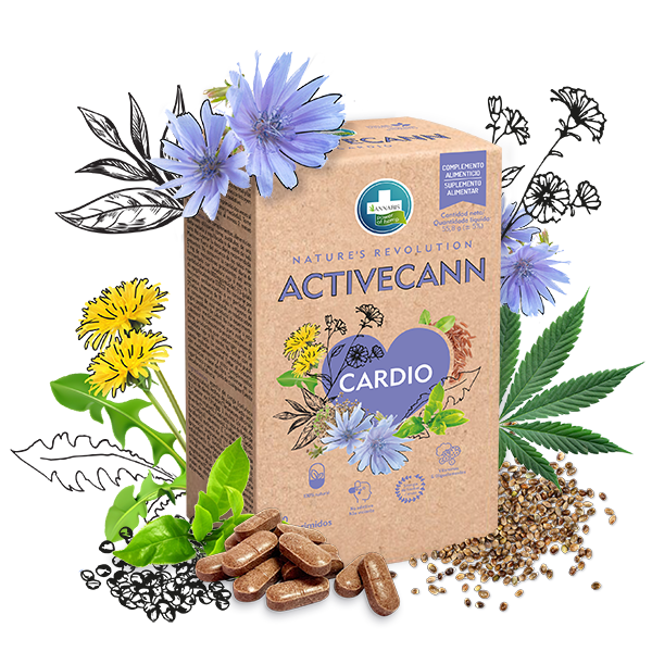 Ingredientes: agente de volume (celulose microcristalina), lecitina de soja, extrato seco de raiz de dente-de-leão (Taraxacum officinale (L.) Weber ex F.H.Wigg.), inulina (de Cichorium intybus root L.), extrato seco de folha de chá verde (Camellia sinensis L.), vitamina C (ácido L-ascórbico), vitamina E (acetato de DL-α-tocoferol), extrato de arroz vermelho fermentado (Monascus purpureus), L-selenometionina (de Saccharomyces cerevisiae); estabilizador (carboximetilcelulose sódica), antiaglomerante (dióxido de silício), niacina (nicotinamida), antiaglomerante (sais de magnésio de ácidos gordos), pó de sementes de cânhamo (Cannabis sativa L.). Pode conter vestígios de tremoços e produtos à base de tremoço. Embalagem: 60 comprimidos. Os comprimidos ACTIVECANN Cardio contêm uma combinação única de substâncias ativas:
