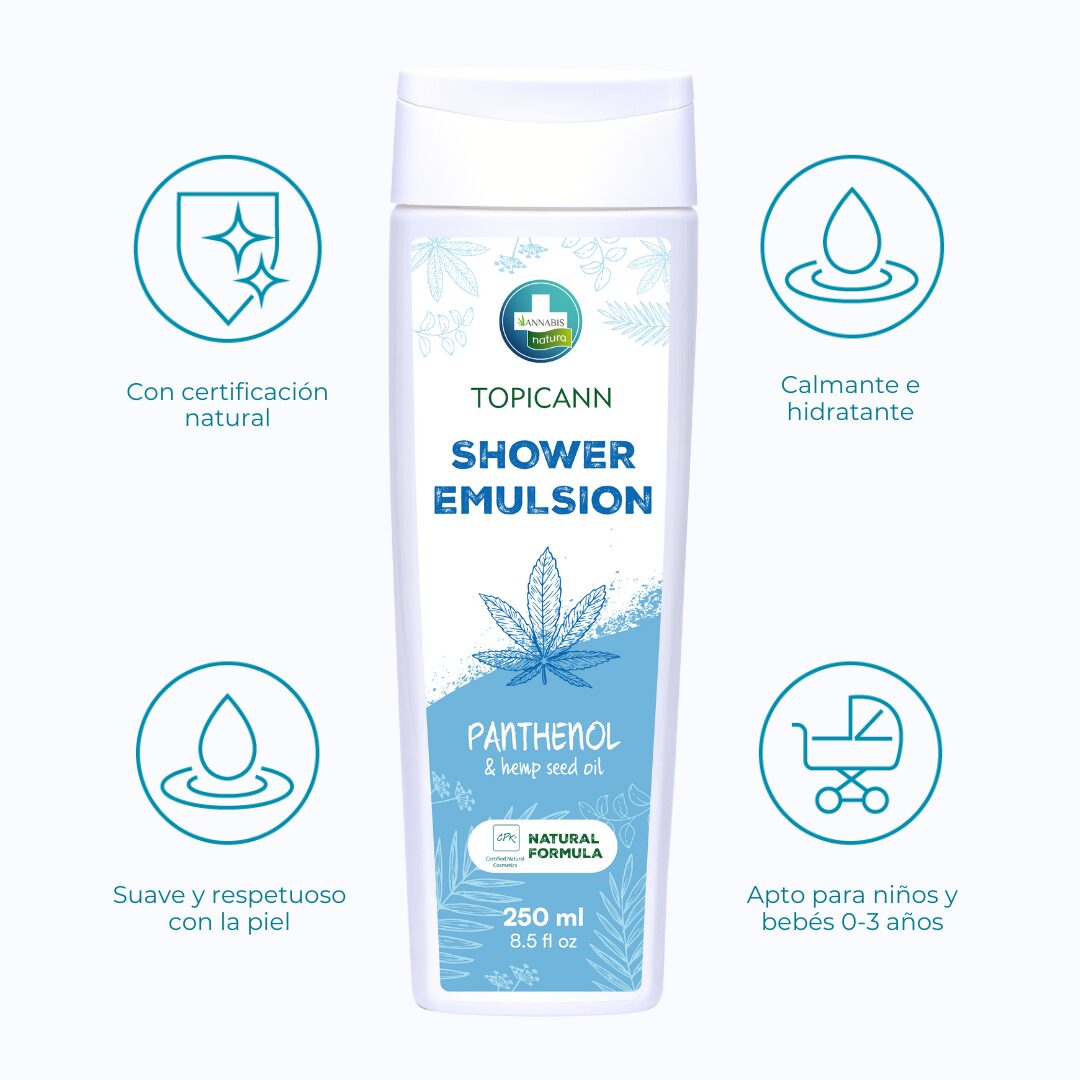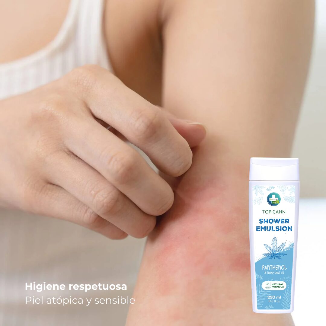 O gel de banho TOPICANN em formato de emulsão é especialmente formulado para o cuidado diário da pele atópica e sensível. Esta emulsão suave combina o poder do óleo de cânhamo e do D-Pantenol, proporcionando uma limpeza profunda sem irritar ou secar, enquanto ajuda a regenerar a barreira protetora da pele. Graças à sua mistura exclusiva de 19 extratos naturais de ervas e óleo de sementes de cânhamo, a lavagem corporal TOPICANN oferece uma experiência de limpeza suave que suaviza e nutre a pele, reduzindo a secura e irritação típicas da pele com dermatite atópica. A sua fórmula foi concebida para manter a pele hidratada e protegida, tornando-a ideal para pele seca ou propensa a descamação. O gel de banho em emulsão TOPICANN é perfeito para uso diário por toda a família, especialmente para aqueles que procuram um produto natural e eficaz para a pele hipersensível.